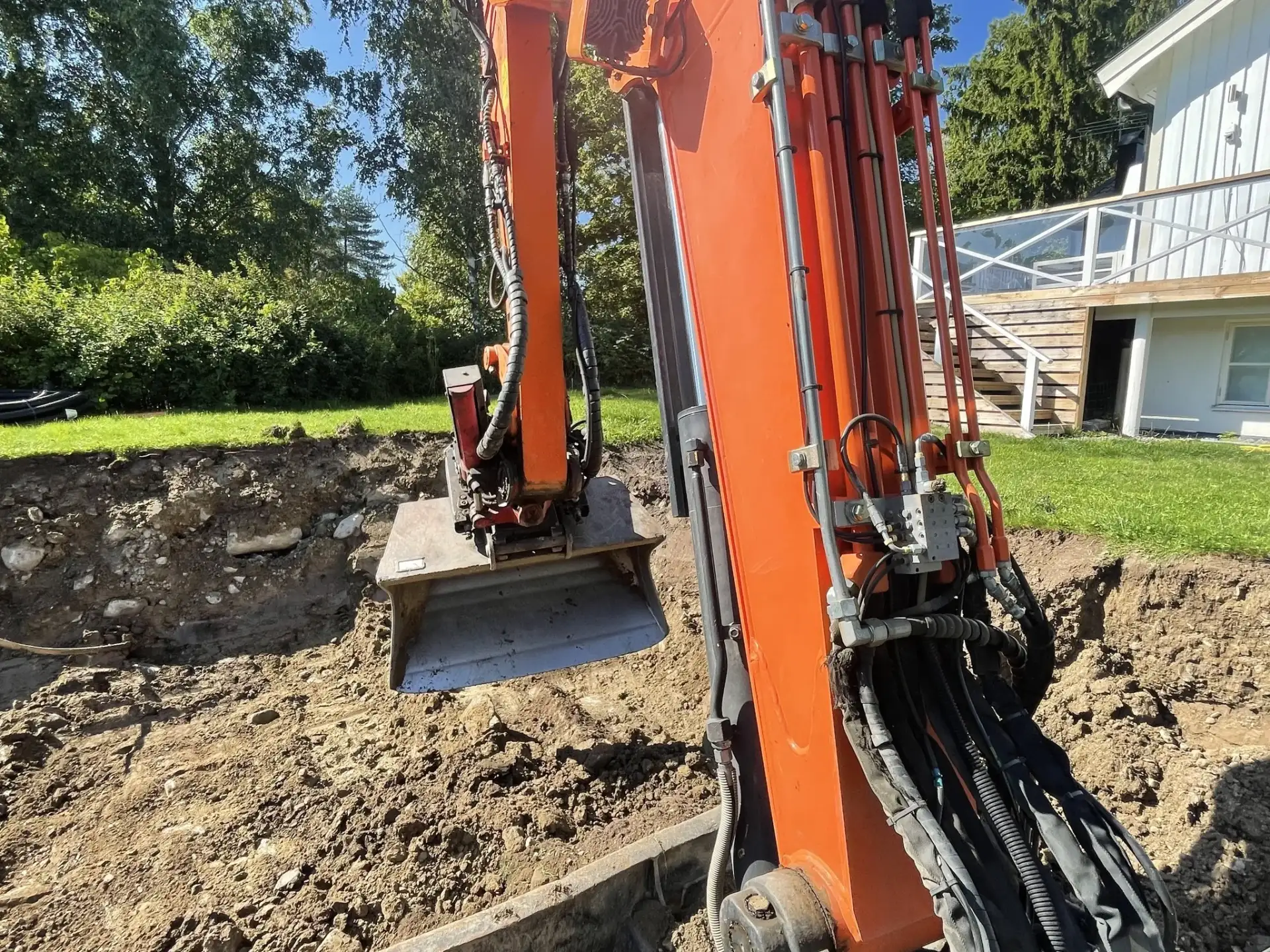 Behöver du hjälp med schakt? Vi utför schakt för pool, husgrund, avlopp, väg, dike och jordvärmeslinga. Vi ser till att marken förbereds på rätt sätt inför ditt projekt. Har vi inte maskinerna som krävs så skaffar vi dem – inga jobb är för stora eller små för oss